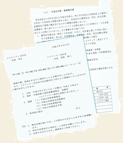1990年(平成2年)4月8日 住民総会を中富南部土地区画整理組合の会議室をお借りして開催しました